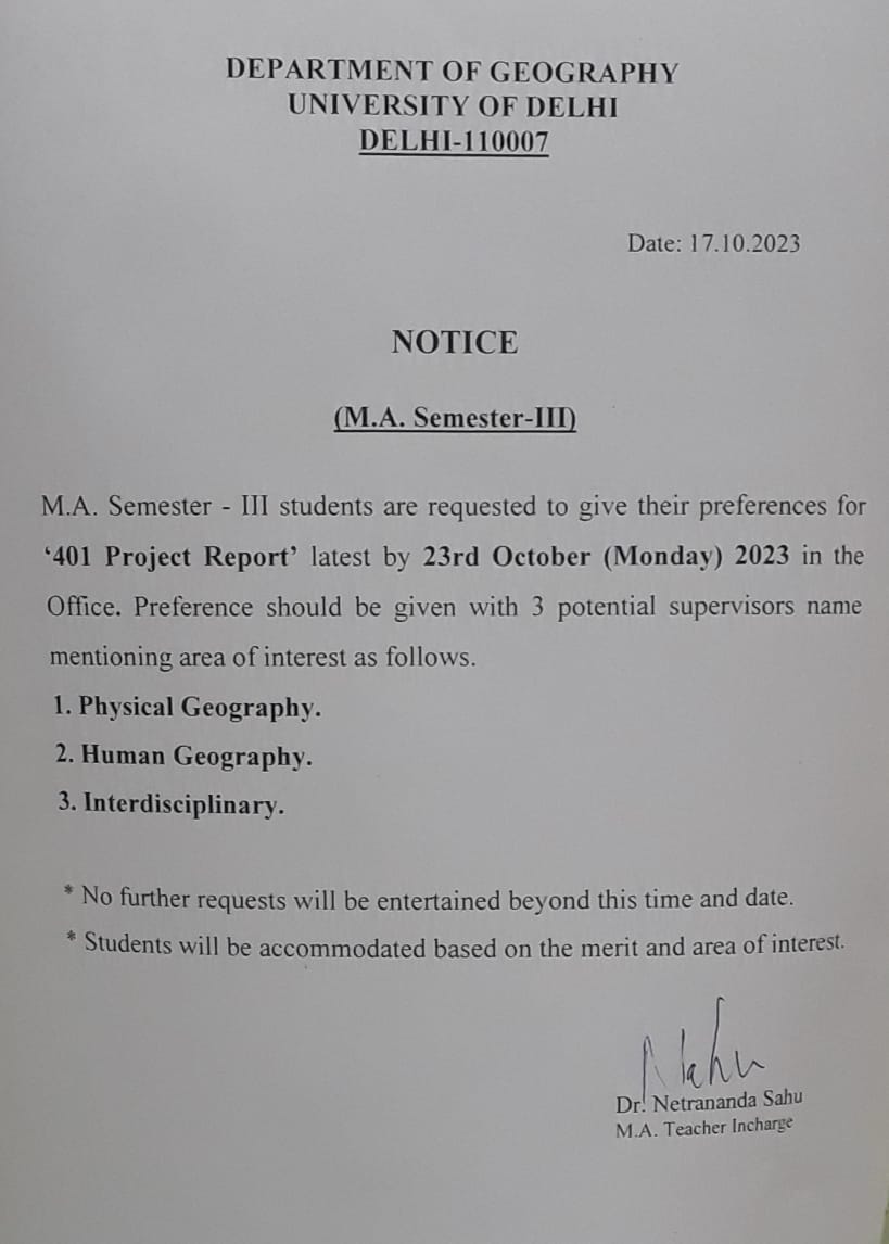 - Application for Adhoc/Guest Panel of the Department of Geography for the year 2024-25 [Click Here]