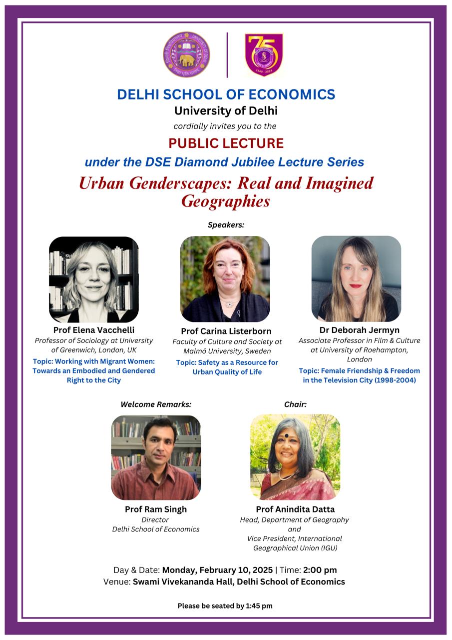- Public Lecture under the DSE Diamond Jubilee Lecture Series "Urban Genderscapes: Real and Imagined Geographies" [Click Here]